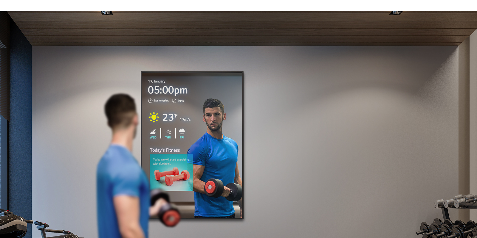 6. Mirror LG Digital Signage: แอลจี ดิจิตอลไซเนจ รุ่น Mirror เป็นจอที่ออกแบบเป็นกระจกเงาที่สามารถประชาสัมพันธ์ได้ ทำให้นำเสนอบริการได้อย่างโดดเด่น มี 1 รุ่น ขนาด 49 นิ้ว ให้ความสว่างระดับ 600 cd/m² ขอบบาง 8.4 mm ความหนาเพียง 37.3 mm