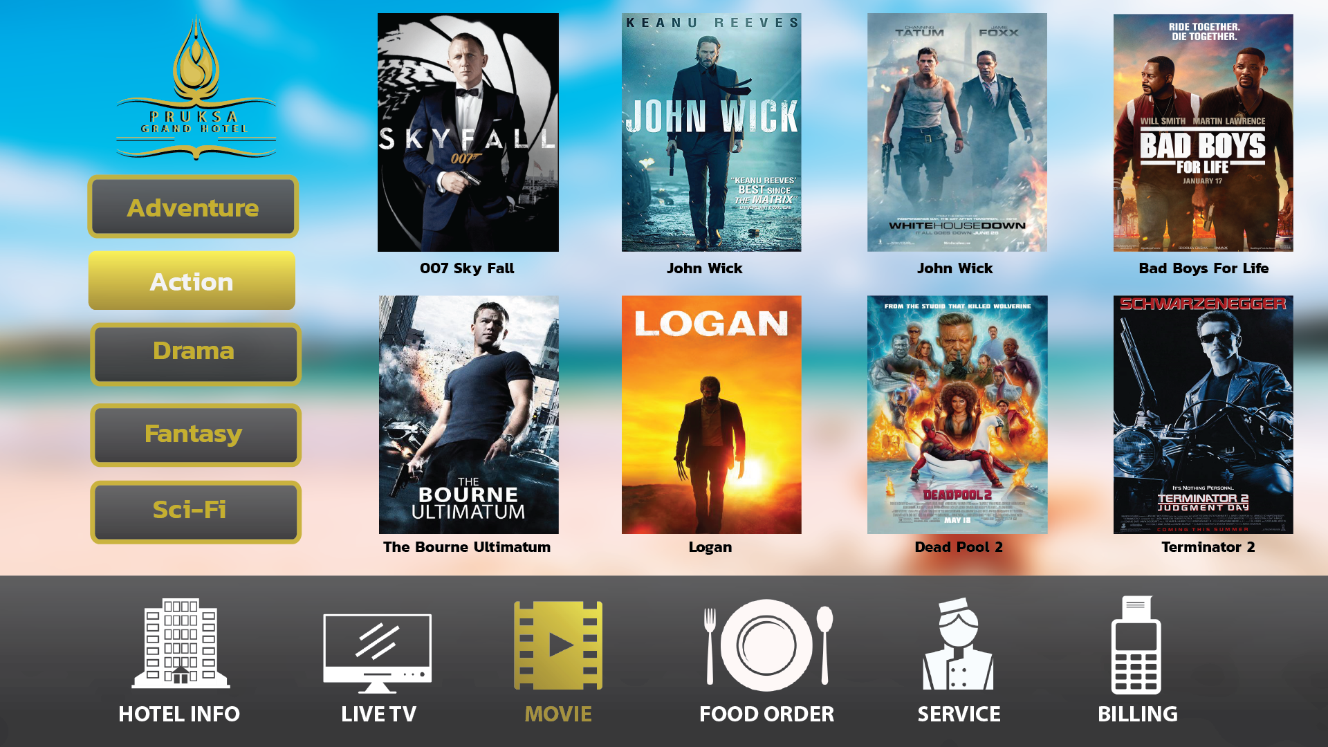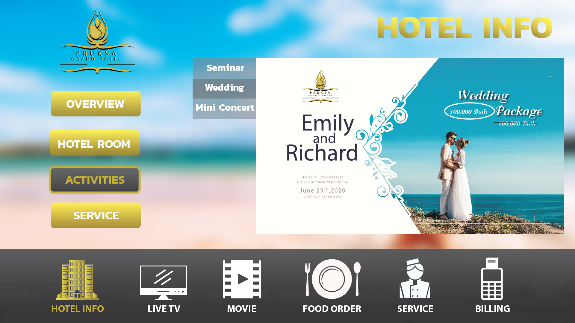 Hotel Service หน้าจอบริการจากทางโรงแรม สามารถเรียกใช้บริการได้ผ่านทาง Hostel IPTV ได้อย่างสะดวกรวดเร็ว