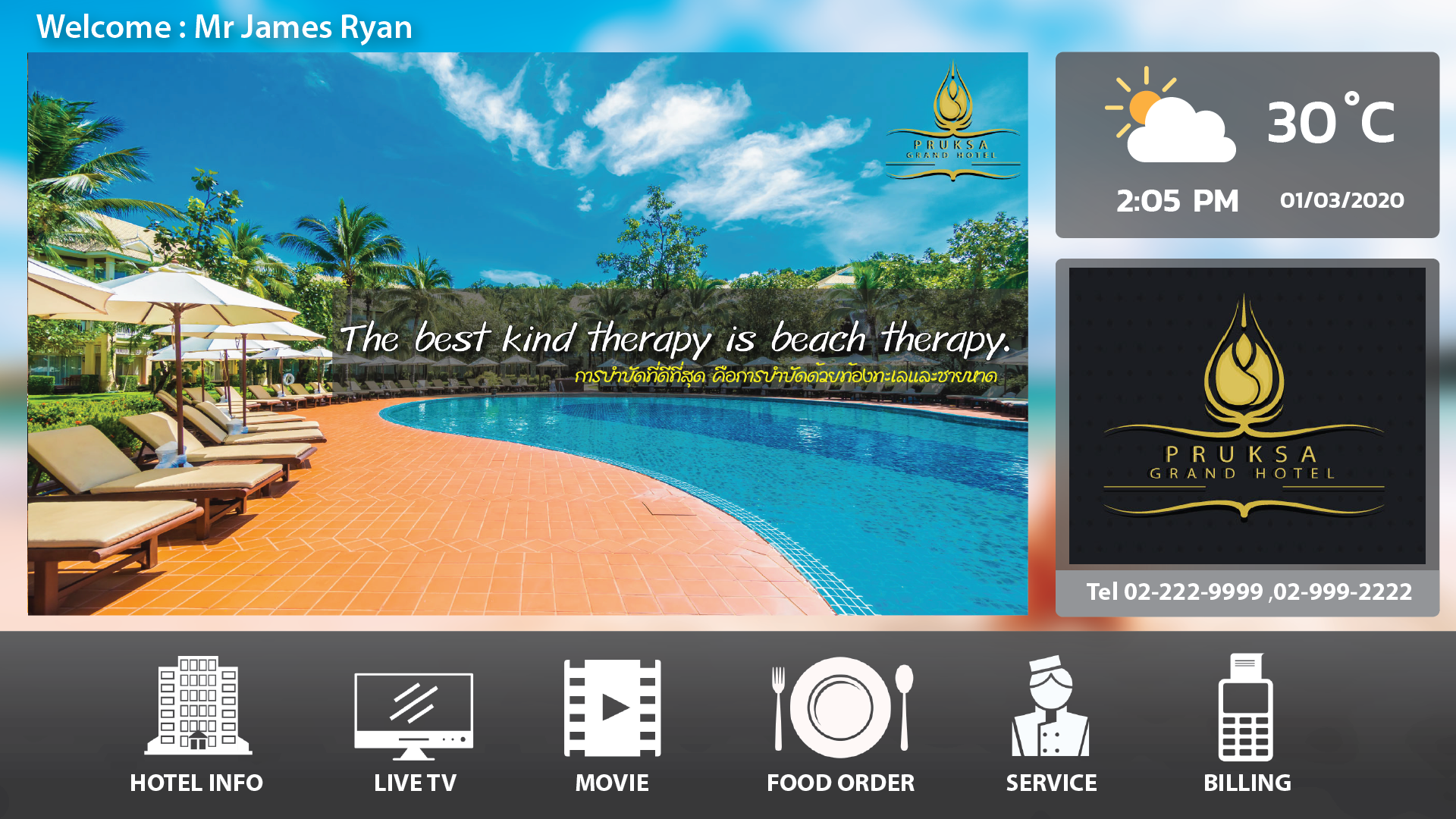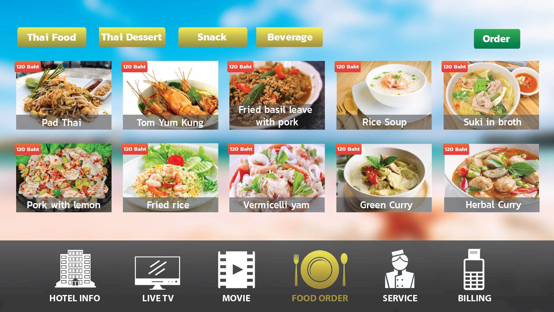 Food Order สามารถสั่งอาหารผ่าน TV ได้อย่างสะดวกสบาย สามารถเลือกเมนูอาหาร และจ่ายผ่านหน้าจอทีวีเพียงแค่กดรีโมท