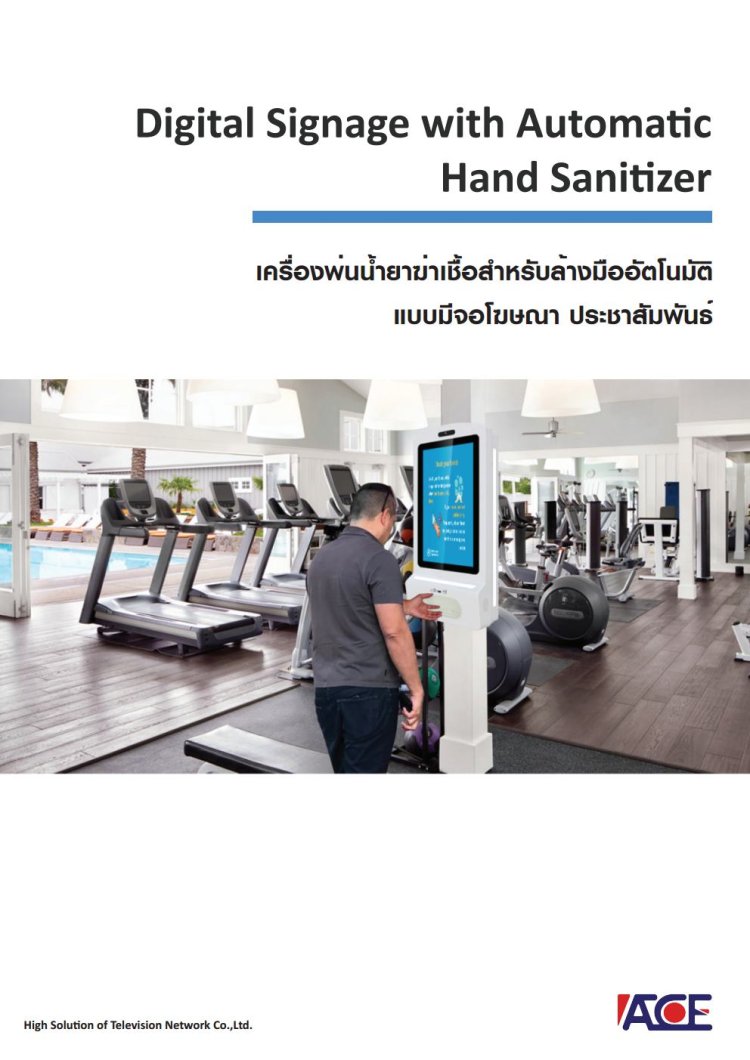 เครื่องพ่นน้ำยาฆ่าเชื้อ พร้อมตัวจับอุณหภูมิร่างการ แบบมีจอโฆษณา ประชาสัมพันธ์