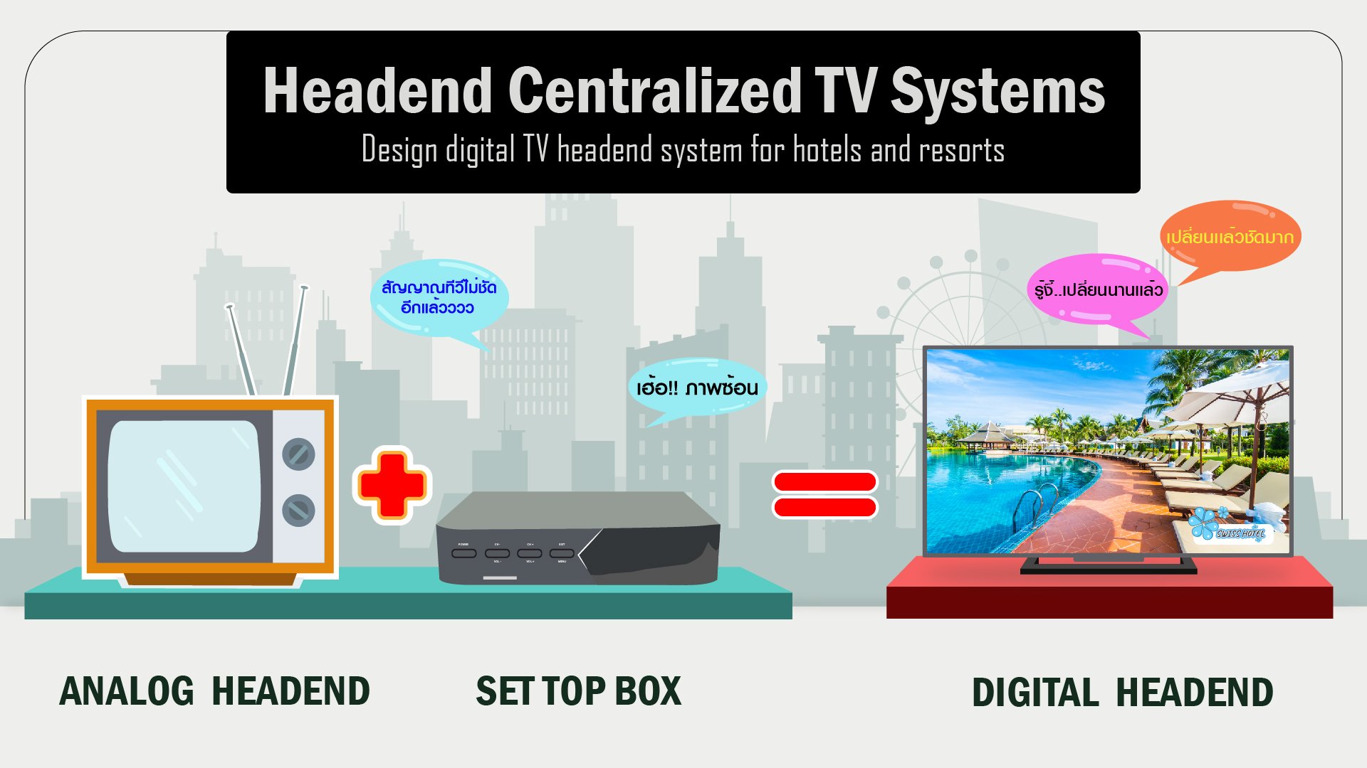 Consulting, design, installation and improvement SMATV headend system for hotels and resorts that are Digital TV headend system for new Digital TVs, Analog TV headend system for older TVs and both Digital & Analog TV headend system for hotels and resorts that have both old TVs and new Digital TVs.