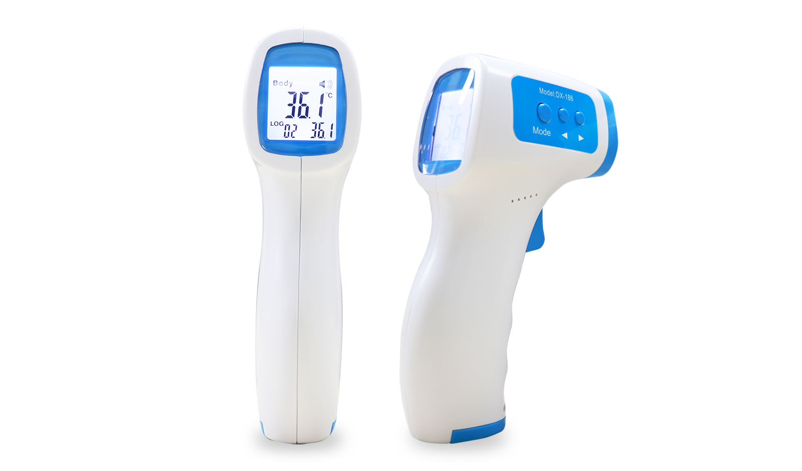 Specifications and performance parameters Product name : Infrared thermometer Model : DX-186 Dimensions : 150mm X 83MM X 43MM Product Weight : 100 g (without battery) Measurement Methods : Non-contact temperature measurement Body Temperature Model : 32℃-43℃ Surface Mode : 20℃-50℃ Measure Time : 1 S Measurement accuracy : ≤±0.2℃ (Within35℃-42℃) ≤±0.3℃ (Other than35℃-42℃) Use Environment : Suitable ambient temperature : 10℃-40℃ . Memory : Records 30 temperature readings in memory mode. Sound : beep prompt (standard version) Applicable battery : 2 pcs 1.5V AAA(7#) Period of Use : 1 years Automatic Shut-Down : Automatic shutdown after no one operates after about 30 s