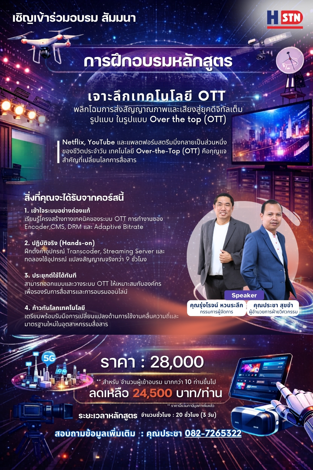 | 09.00-10.00 | พื้นฐานระบบ OTT และระบบการสตรีมมิ่ง |